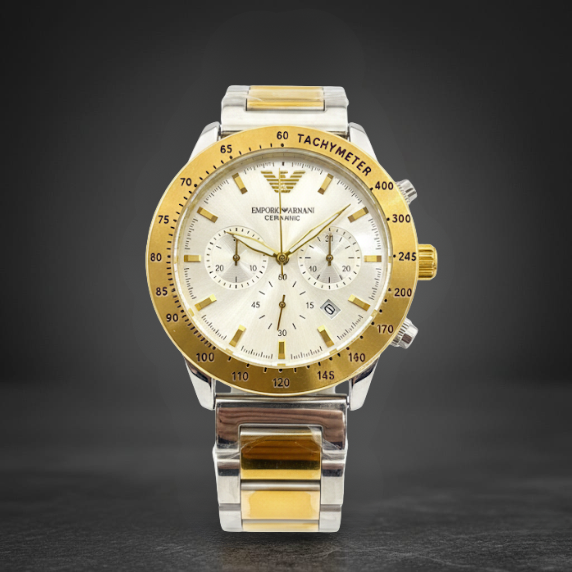 Be the first to review “Emporio Armani World Explorer Men’s Watch – 43.5mm Chronograph with Two-Tone Stainless Steel Bracelet”
