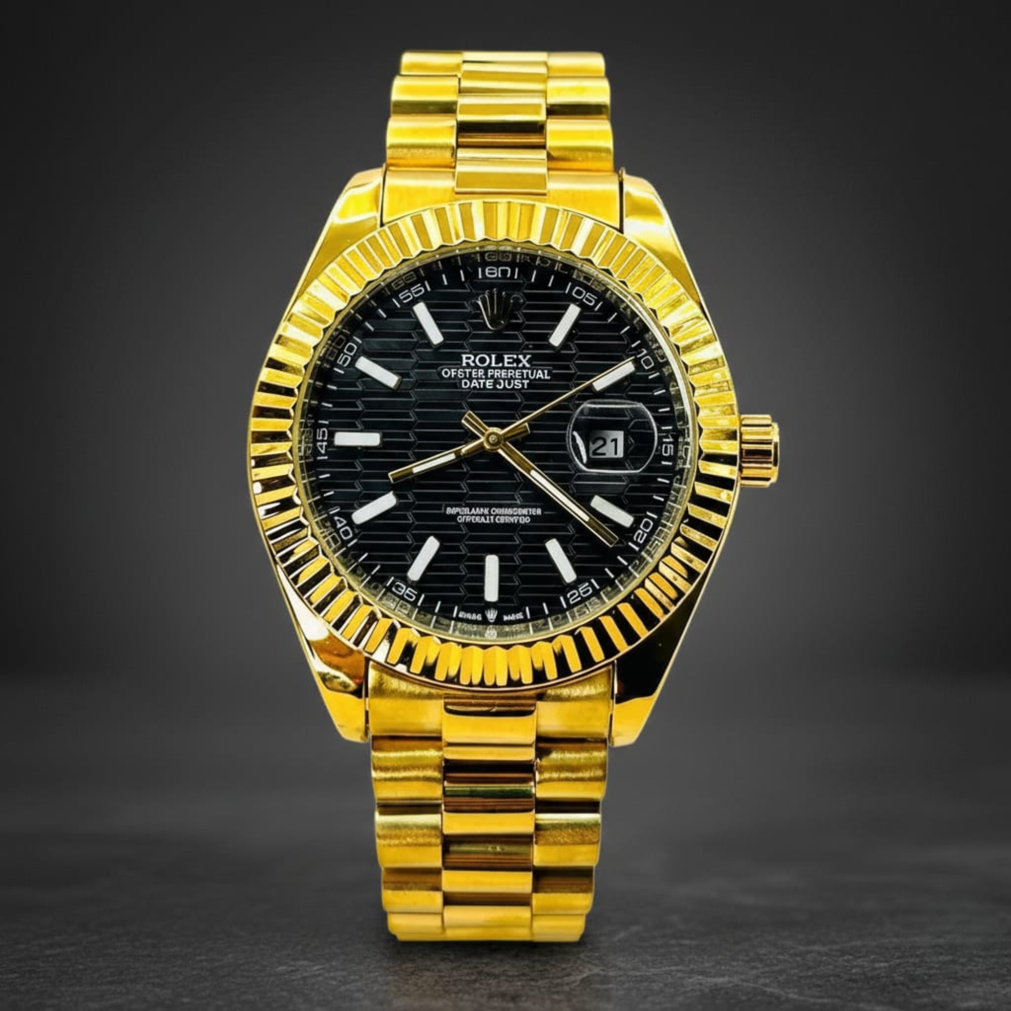 The Rolex Men’s Stainless Steel Gold Watch – Datejust Master Clone blends luxury, precision, and style in a single timepiece. Featuring a 38mm stainless steel case, Swiss quartz movement, and scratch-resistant sapphire crystal, this watch delivers accurate timekeeping and long-lasting durability. Its elegant gold accents and waterproof construction make it perfect for both formal occasions and everyday wear. A sophisticated design that enhances any outfit, this watch also makes a thoughtful gift for watch enthusiasts and professionals seeking timeless style.